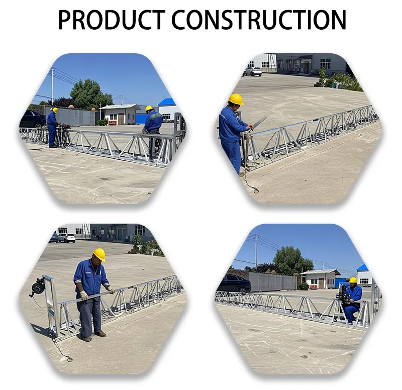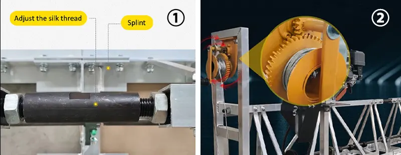 Tous les roulements de la machine à chape de berceau vibrant en aluminium en aluminium en aluminium 12 m adoptent des roulements sphériques importés, qui ont une forte résistance à l'impact. Le joint est renforcé avec 8 vis à haute résistance. The manual winch adopts alloy steel gears, which is labor-saving, durable, convenient and easy to operate
